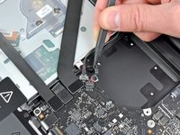 Pull the right speaker/subwoofer cable upward to lift the connector out of its socket on the logic board.