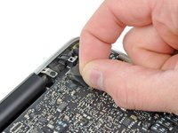 Pull the logic board away from the side of the upper case and remove it, minding the DC-In board that may get caught.