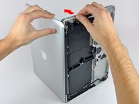 Grab the upper case with your right hand and rotate it slightly toward the top of the display so the upper display bracket clears the edge of the upper case.