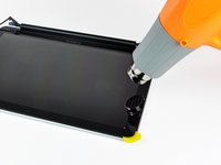 With the heat gun set to low, start by heating the outer black border near the upper right corner of the glass panel.