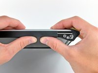 Work along the top edge of the glass panel, carefully using the flat end of a spudger to separate the adhesive if necessary.