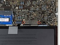 Remove the three 3.4 mm (3.1 mm) T6 Torx screws securing the right fan to the logic board.