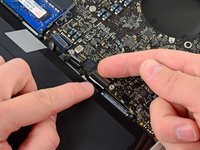 Use the flat end of a spudger to lift the optical drive connector out of its socket on the logic board.