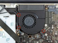 Remove the three 3.4 mm (3.1 mm) T6 Torx screws securing the right fan to the logic board.