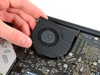Lift the right fan out of its opening in the logic board.