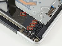 De-route all four antenna cables from their channels in the AirPort/Bluetooth housing.