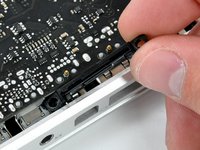 Using the flat end of a spudger, pry the microphone cable connector straight up out of its socket on the logic board.