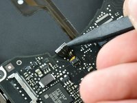 Lift the logic board enough to grab the battery connector and pull it straight away from its socket on the logic board.
