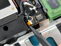 Disconnect the camera cable by pulling the male end out of its socket, parallel to the logic board, do not lift it upwards.