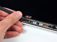 Work along the top edge of the glass panel, carefully using the flat end of a spudger to separate the adhesive if necessary.