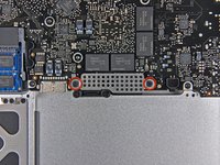 Slide the logic board away from the port openings and lift the assembly out of the upper case.