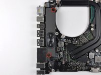 Slide the logic board away from the port openings and lift the assembly out of the upper case.