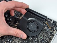Remove the three T6 Torx screws securing the left fan to the logic board.
