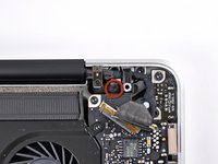 Remove two of the three 6 mm T6 Torx screws securing the left side of the display to the upper case.