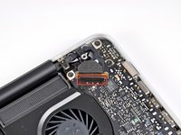 Use the flat end of a spudger to carefully pry the AirPort/Bluetooth ribbon cable up off its socket on the logic board.
