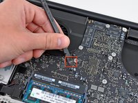 Use the flat end of a spudger to pry the AirPort / Bluetooth ribbon cable up off its socket on the logic board.