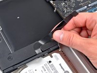 Use the flat end of a spudger to pry the hard drive/IR sensor cable connector up off the logic board.