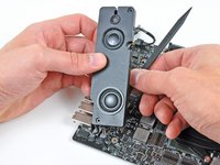 Remove the two 7.9 mm Phillips screws securing the left speaker assembly to the logic board.