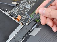 Use the flat end of a spudger to lift the microphone and left speaker connectors out of their sockets on the logic board.