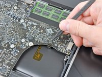 If present, grab the plastic tab attached to the battery connector and pull it toward the front edge of the device. For Late-2011 models the battery connector will not have a tab and is simply a plug that inserts straight down into the motherboard--to remove pry the plug straight up.