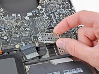 Remove both connector shields from the logic board.