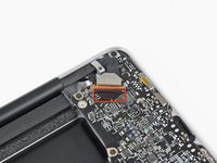 Carefully pull the ports and DC-In board away from the side of the upper case and remove the logic board assembly, minding any cables that may get caught.