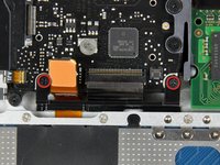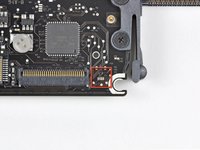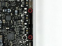 Remove the two 7 mm Phillips screws securing the DC-in board to the upper case.