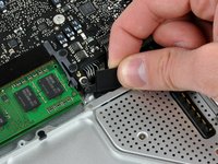Use a Y1 Tri-wing screwdriver to loosely install the 1.2 mm set screw included with your new upper case into its tapped hole near the middle of the trackpad opening on your new upper case.