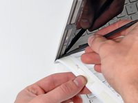 Carefully pry up the front display bezel where it is stuck to the display assembly near the clutch hinges.