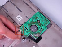 Locate the trackball assembly. It is in the upper case and can be identified by a green circuit board.