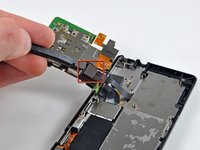Disconnect the power button/volume button connector from its socket on the motherboard using the flat end of a spudger.