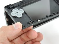 Remove the two 7.7 mm Phillips screws securing the back of the Circle Pad to the motherboard.