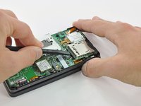 Use a plastic opening tool to pry the shoulder button ribbon cables off their sockets on the motherboard.
