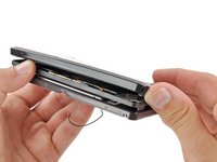 Use the flat end of a spudger or your fingernail to flip up the retaining flaps on the parallax barrier ribbon cable ZIF sockets.