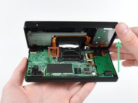 Grasp the stylus holder from the left side and lift upwards to remove it from the DSi.