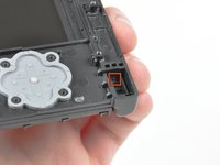 Push the metal hinge pin inward on the D-pad side of the front lower panel with the tip of a spudger.