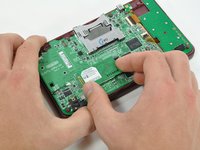 Pry the volume button/left shoulder button connector off its socket on the motherboard with a spudger.