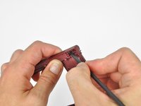 Use the pointed end of a spudger to guide the connector at the end of the microphone cable through the hinge.