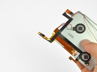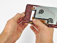To separate the upper LCD and speakers, desolder the contacts on the orange ribbon cable.