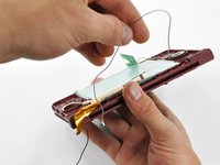 Pull the Wi-Fi antenna cable through the right hinge connecting the front bezel and upper case.