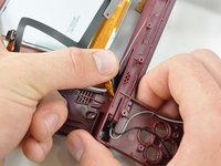 Using the flat end of a spudger, flip up the retaining flap on the ZIF connector for the D-Pad/power button cable.