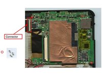 The first step of removing the mainboard is loosening the connector as indicated in the first figure. Also three screws need to be removed using a #00 screw driver.