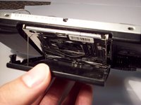 Align the tray to the 2 hinges at the bottom and slide the tray to the left, back into place. The latch should still be above the UMD frame.