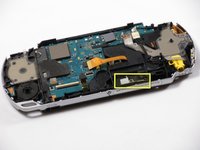 With the front side of the PSP facing you, locate small white plastic box with metal spring attached.