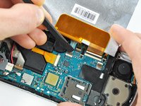 Push the LCD to the left and pry up to release the left edge of the LCD from under the plastic tab.