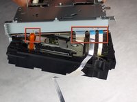 Carefully remove the orange ribbon cable from the laser by gently pulling on the white plastic strip.