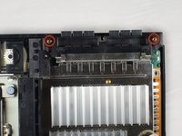 Remove the two 6.4 mm black Phillips screws securing the optical disc drive to the bottom case.