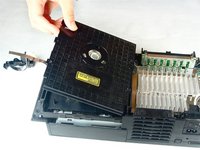 Remove the four 6.4 mm Phillips screws securing the top lid of the optical disc drive.
