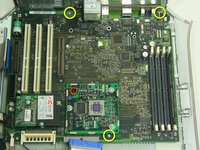 Unfasten 3 Phillips screws revealed beneath the heat sink on the CPU board.