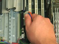 Pull the drive out to allow access to the power and ribbon cables. Do not fully remove.